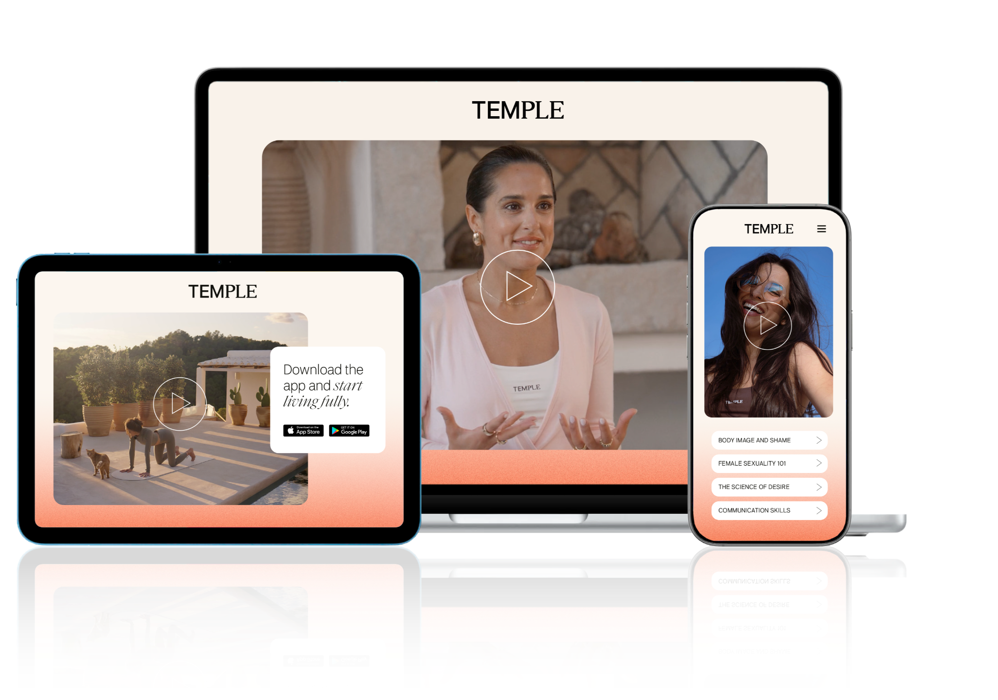 Liberation is Temple's boldest layer. It's where everything comes together โ in partnered intimacy, in solo practice, and in how you move through the world. Built by licensed professionals who know how to hold both science and the sacred.